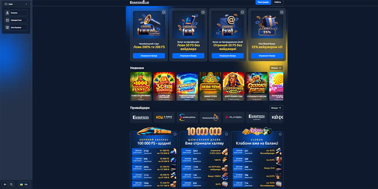 Регулярні програми Champion Club діють на постійній основі та оновлюються згідно з розкладом.